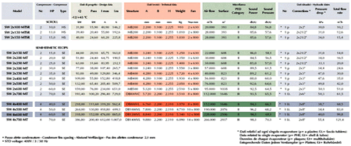 Чилер - разладувачи на течност прилагодени за надворешна инсталацијасо кондезација на воздух. Серијата SW предвидува солуции со еден илисо два компресори со независни разладни циркулации. На располагање се две верзии: со батерија free-cooling (слободно ладење) и/или со акумулативни резервоари со пумпи. Серијата SW е предвидена со полухерметички алтернативни или со полухерметички компресори на навојна компресија.
